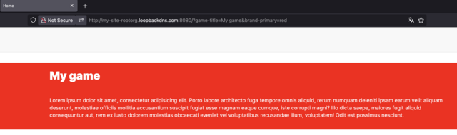 4. Create this link and access the website using it: kademi-site.com/?game-title=My%20game&brand-primary=red. Don’t forget to replace kademi-site.com with your own website domain. You will then see the configuration applied to the website.
