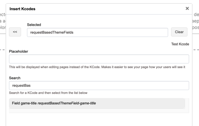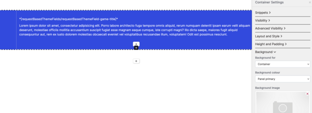 2. The administrator goes to the website editor, where they will find a KCode named Field game-title in requestBasedThemeFields, and add it to the page. They can then change the background color of the container to Panel primary.